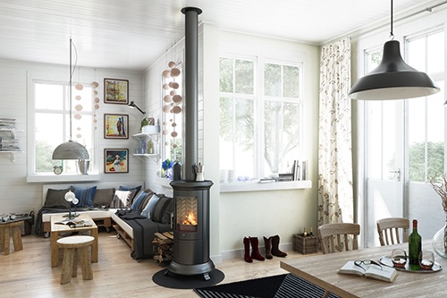 En général, le poêle s’installe dans la pièce à vivre. Si vous optez pour un poêle à bois, au meilleur rendement énergétique, il peut être intéressant de le placer de manière à ce qu’il chauffe, au moins partiellement, le reste de la maison. Le plus souvent plaqué contre un mur, ou à côté, il existe aussi des appareils encastrables. Si votre pièce est assez grande, vous pouvez carrément l’installer en plein milieu : c’est très tendance. Petit bémol : il faut alors, dans ce cas, penser à éviter que les enfants ne s’en approchent.